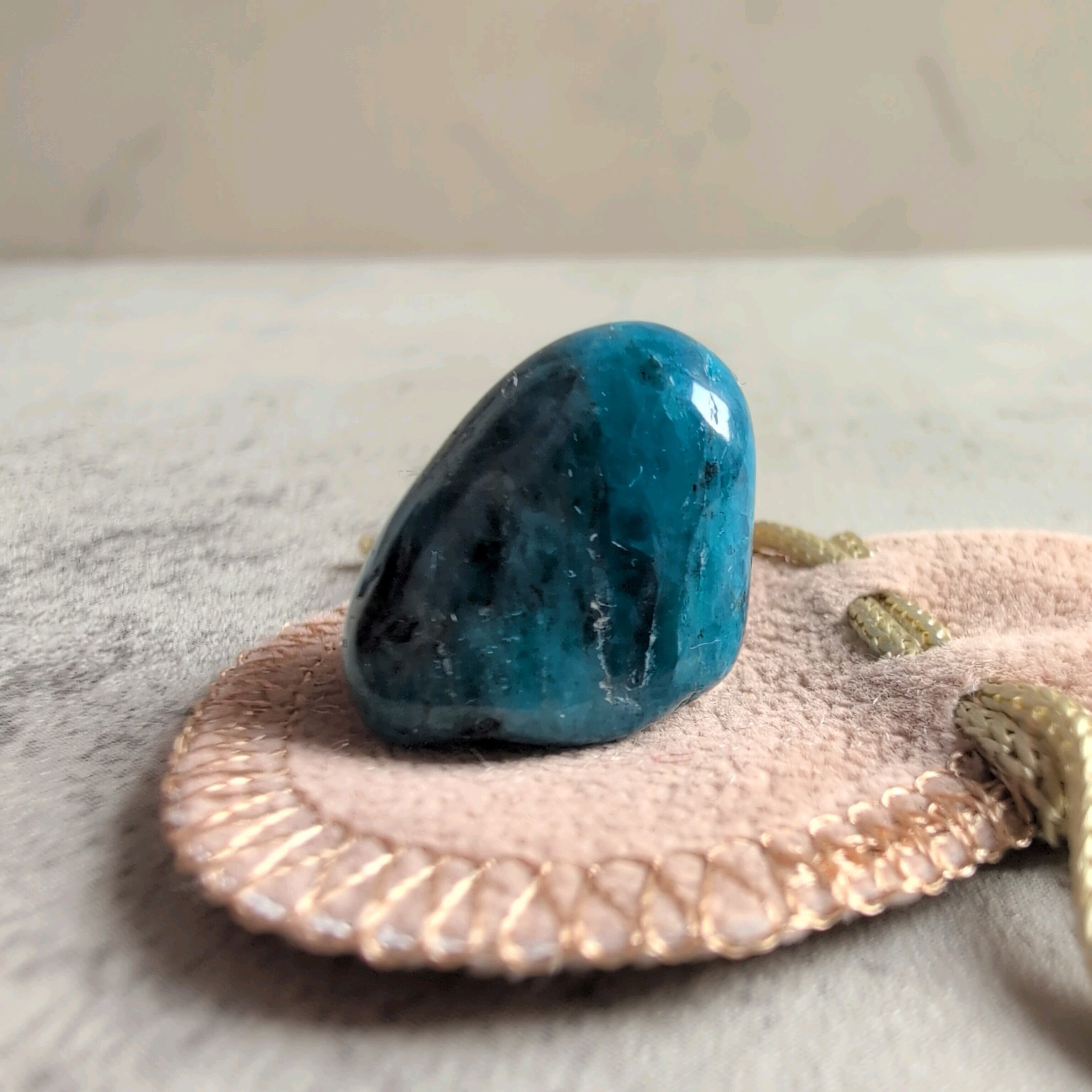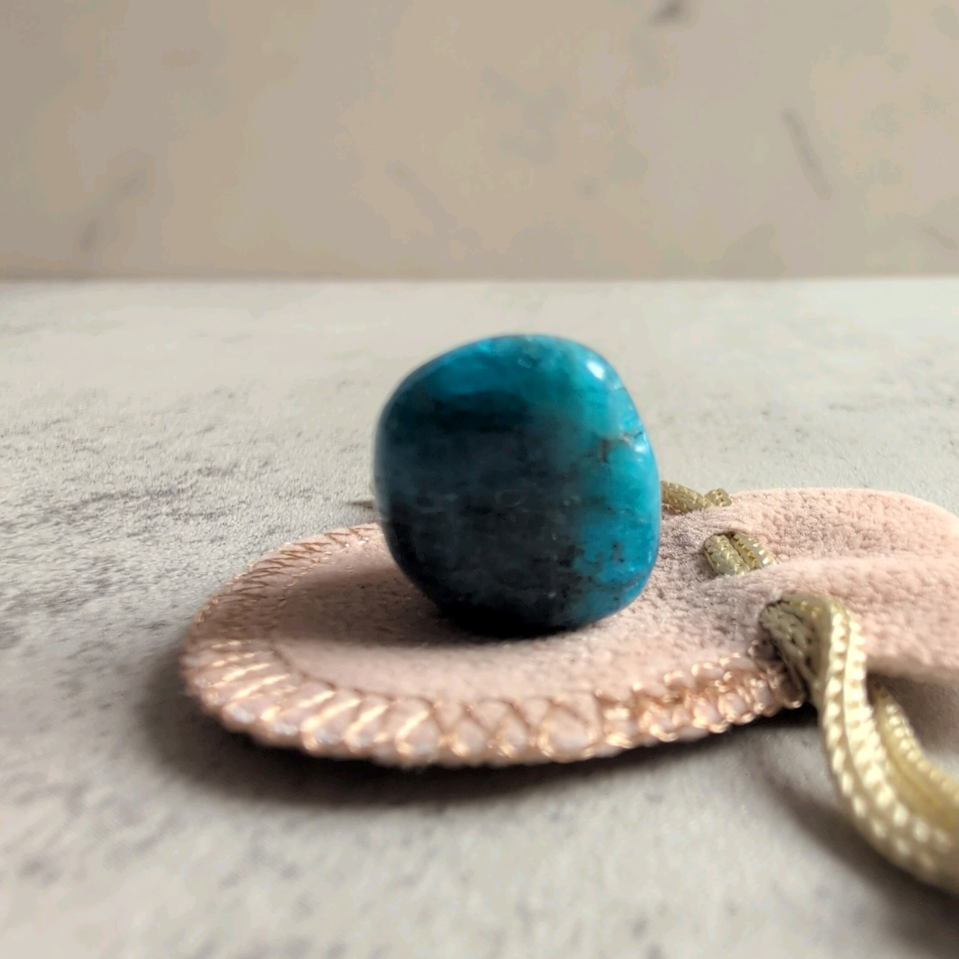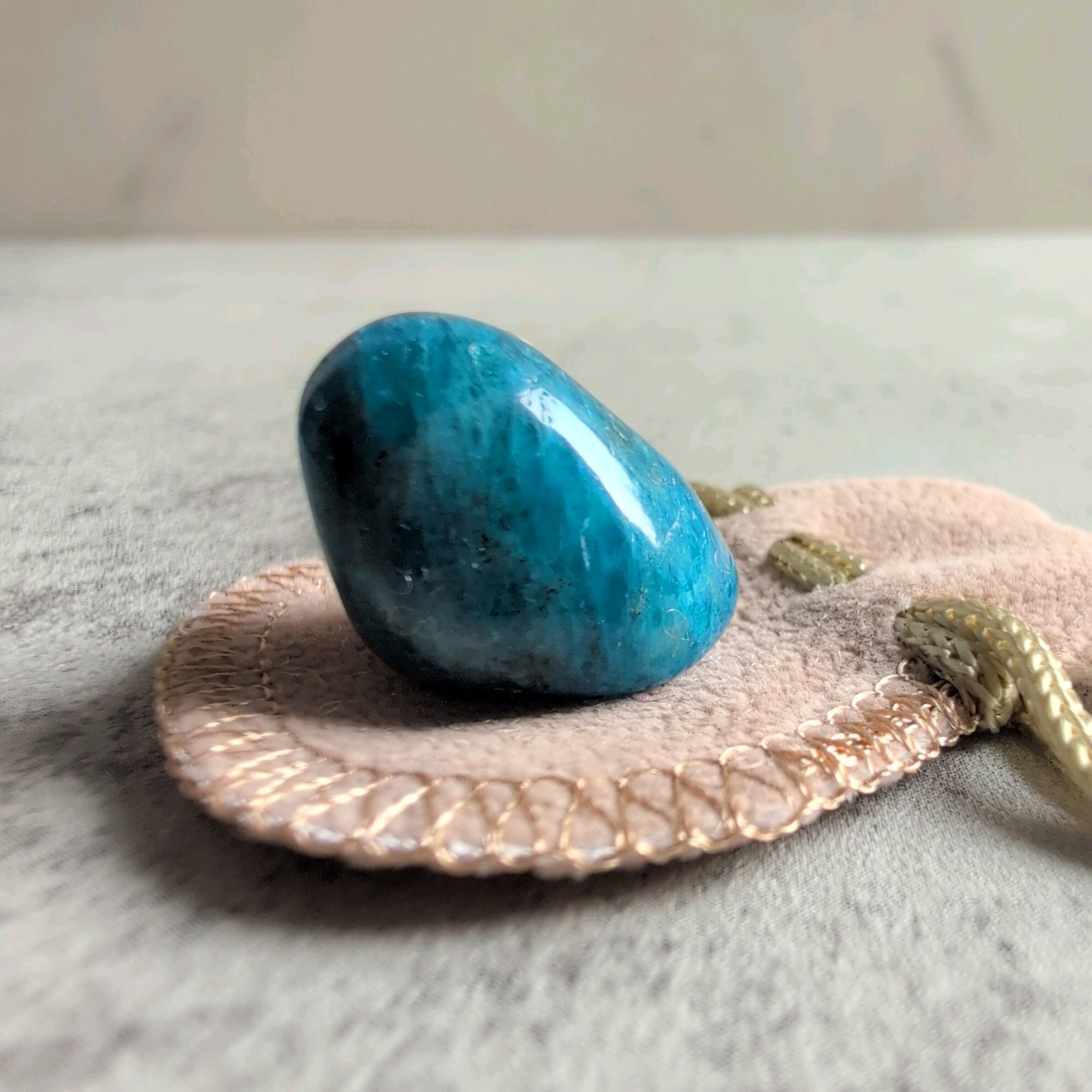 ミニミニサイズのブルーアパタイトです。小さな巾着付きが可愛い。