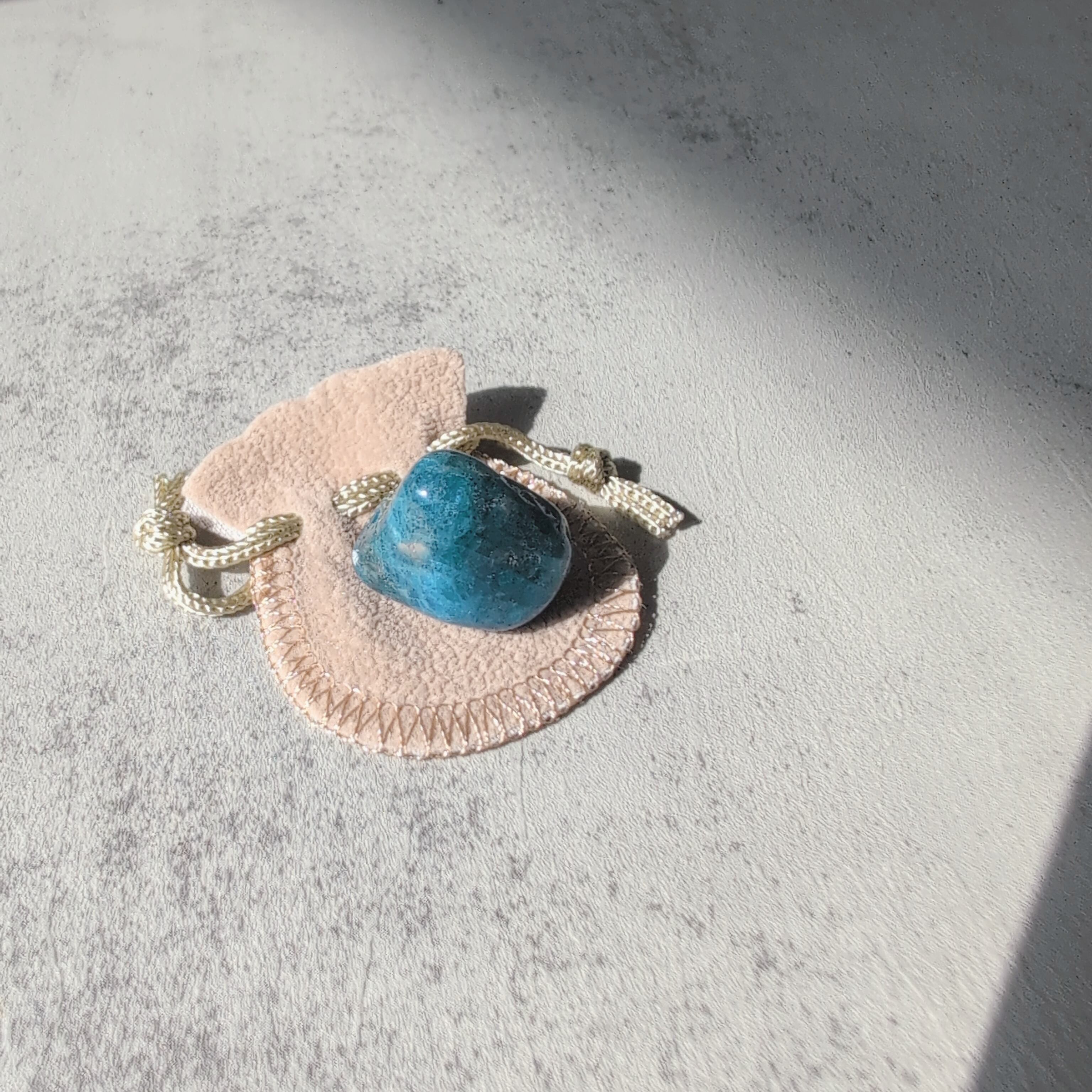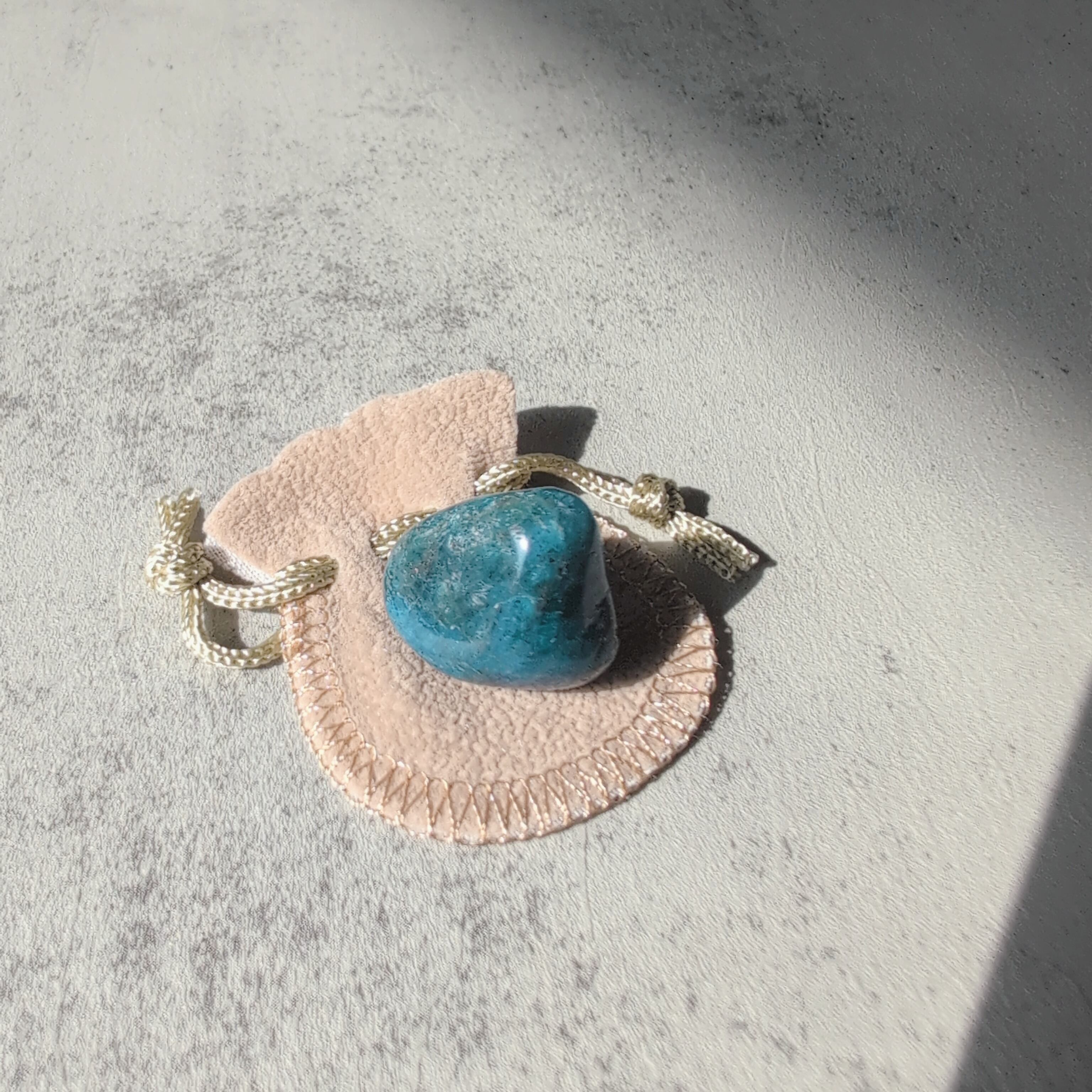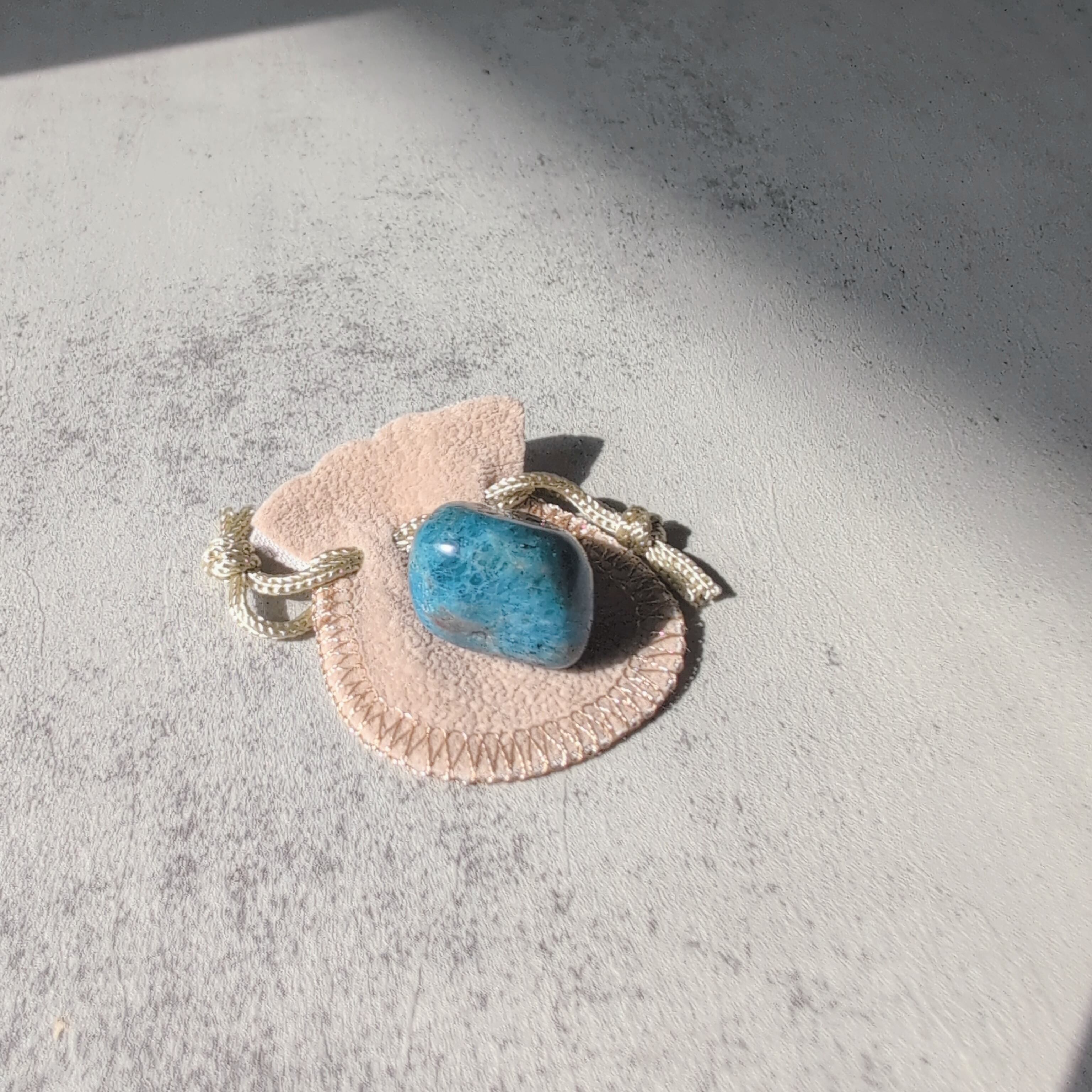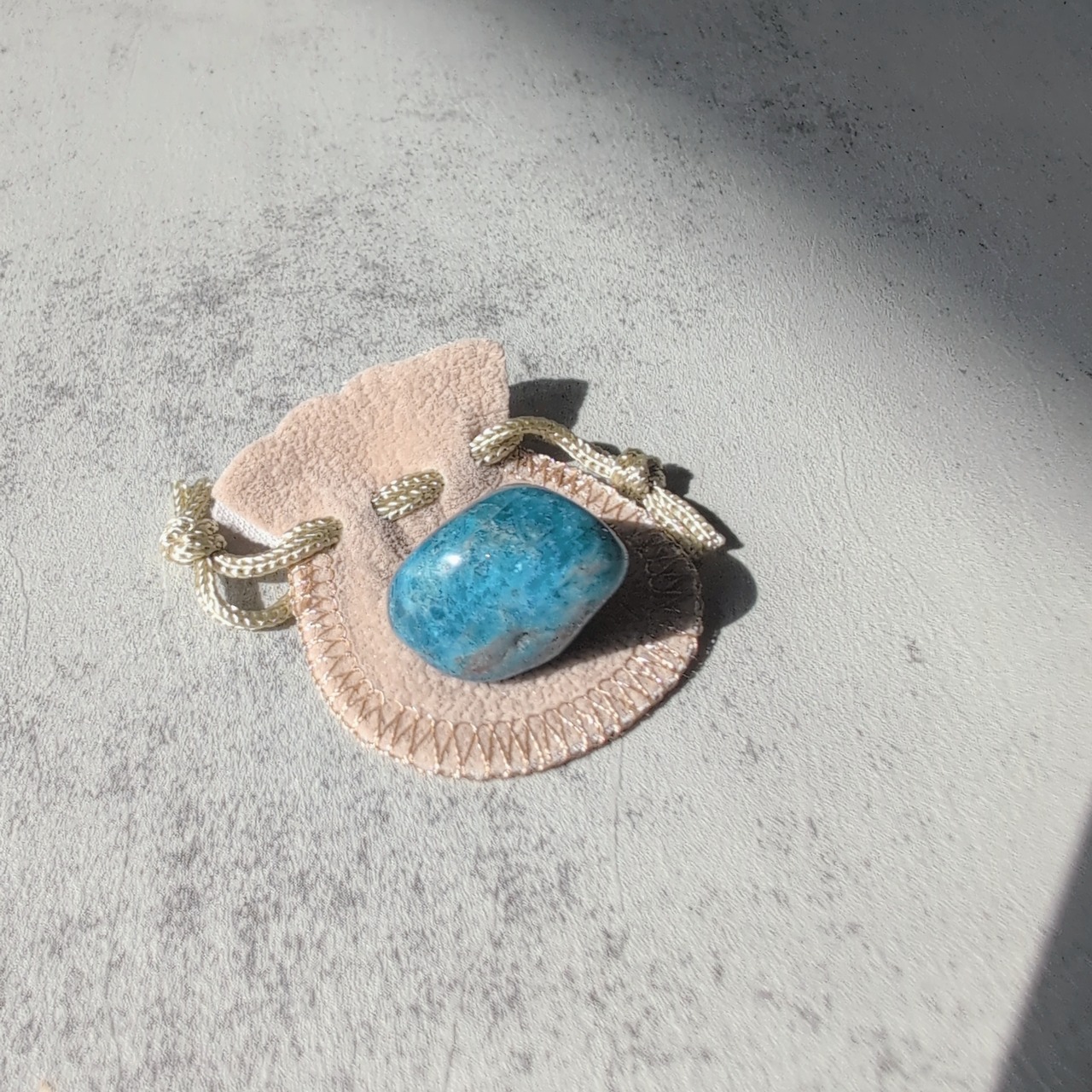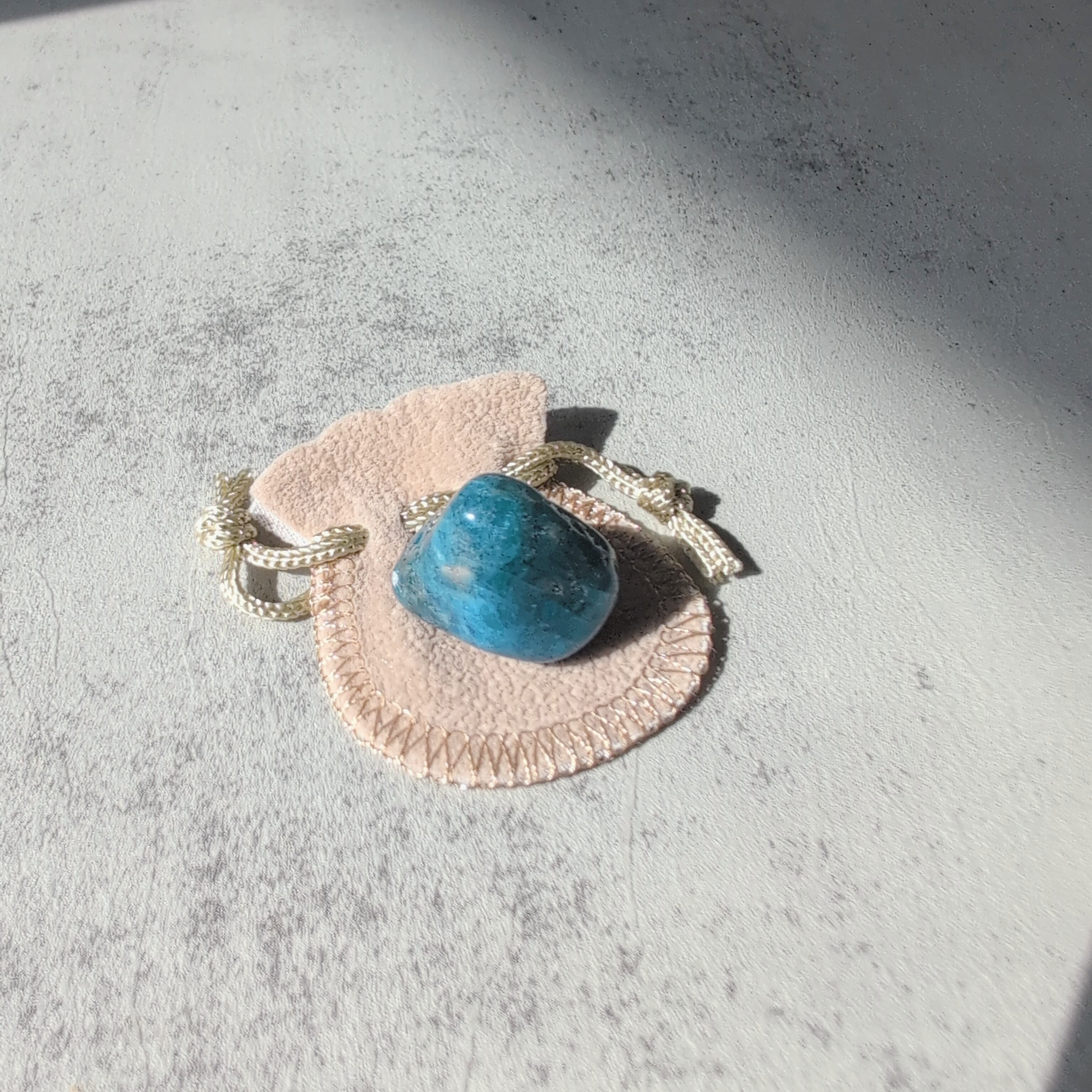 ミニミニサイズのブルーアパタイトです。小さな巾着付きが可愛い。