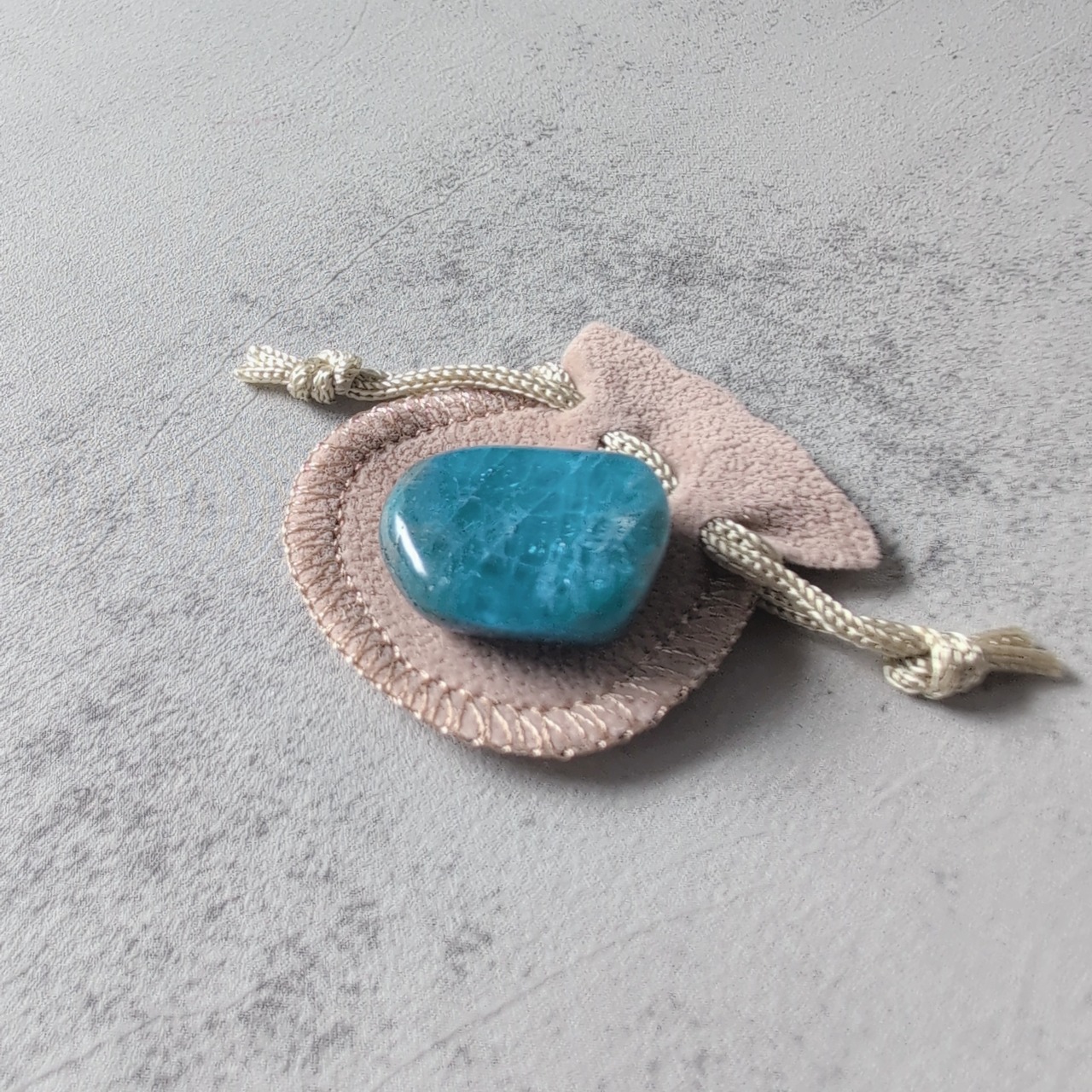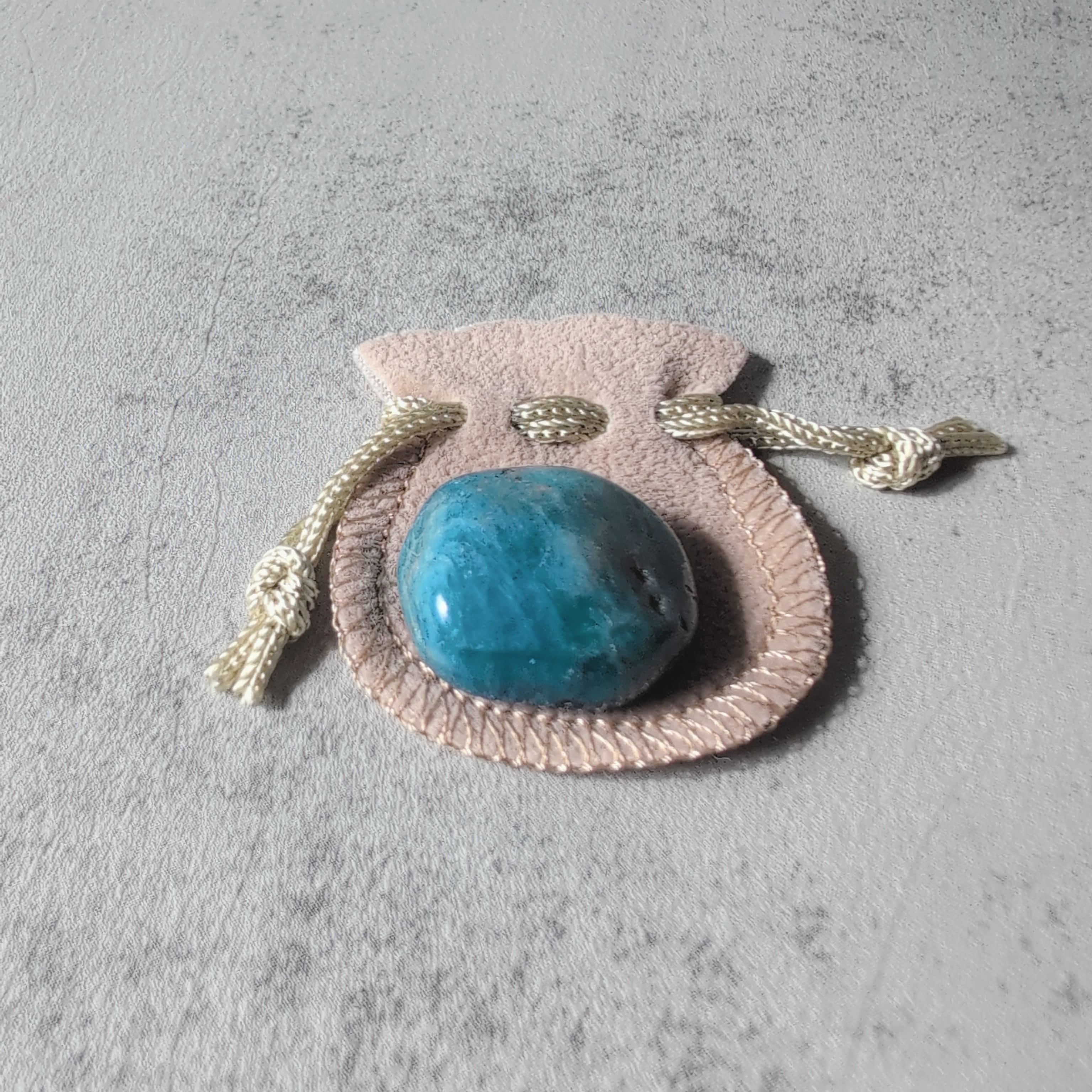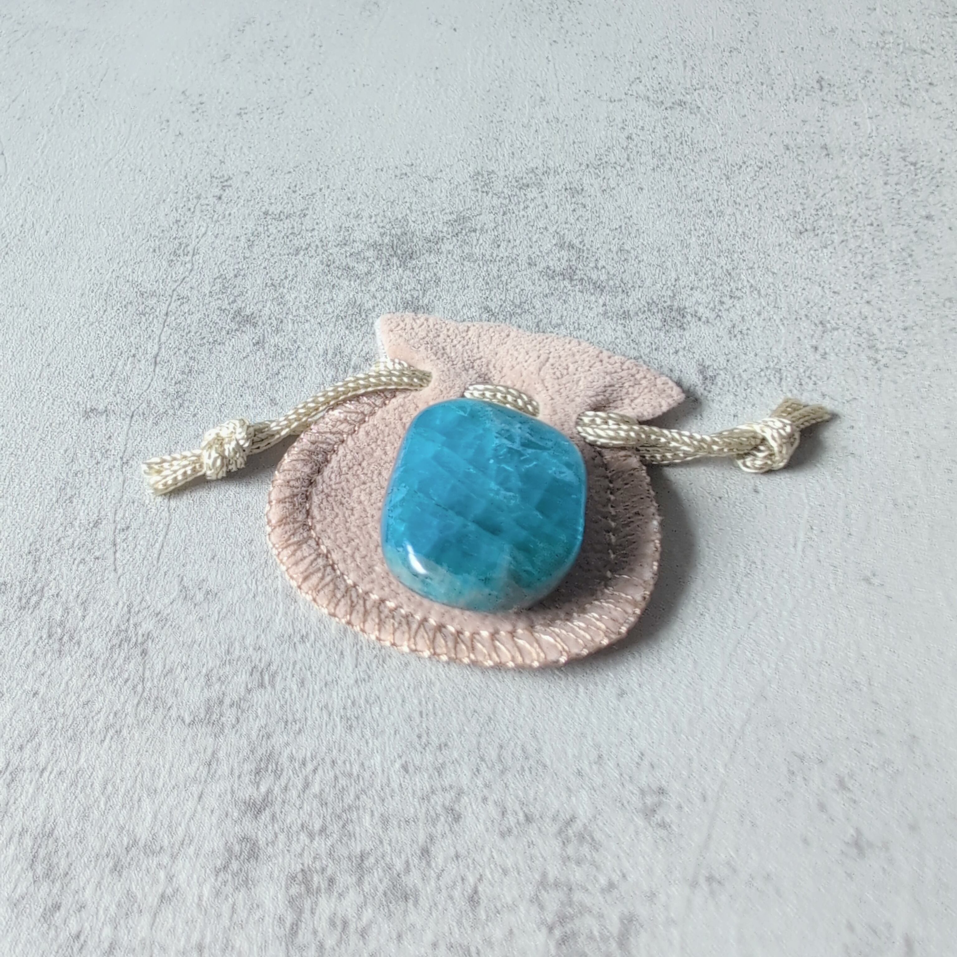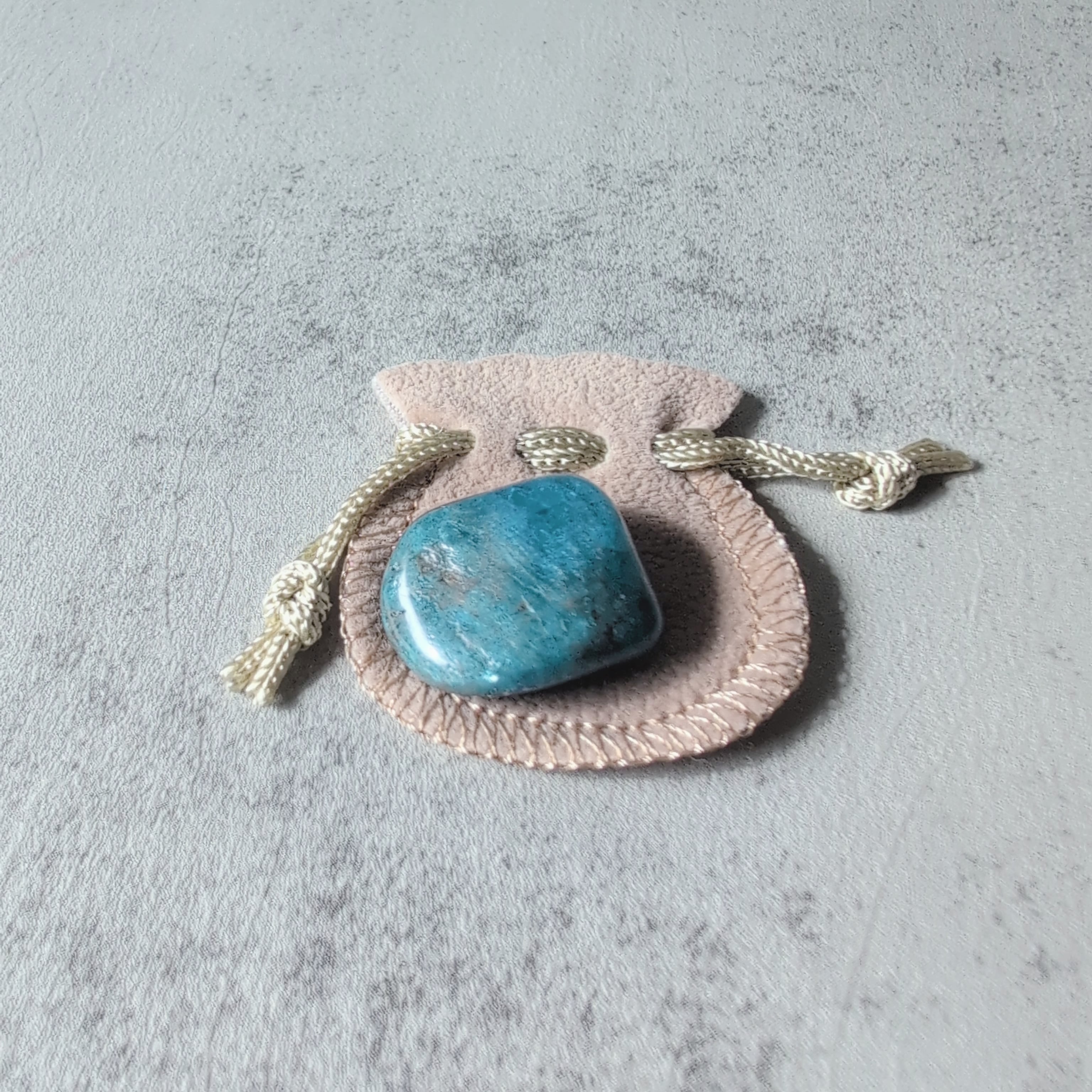 ミニミニサイズのブルーアパタイトです。小さな巾着付きが可愛い。