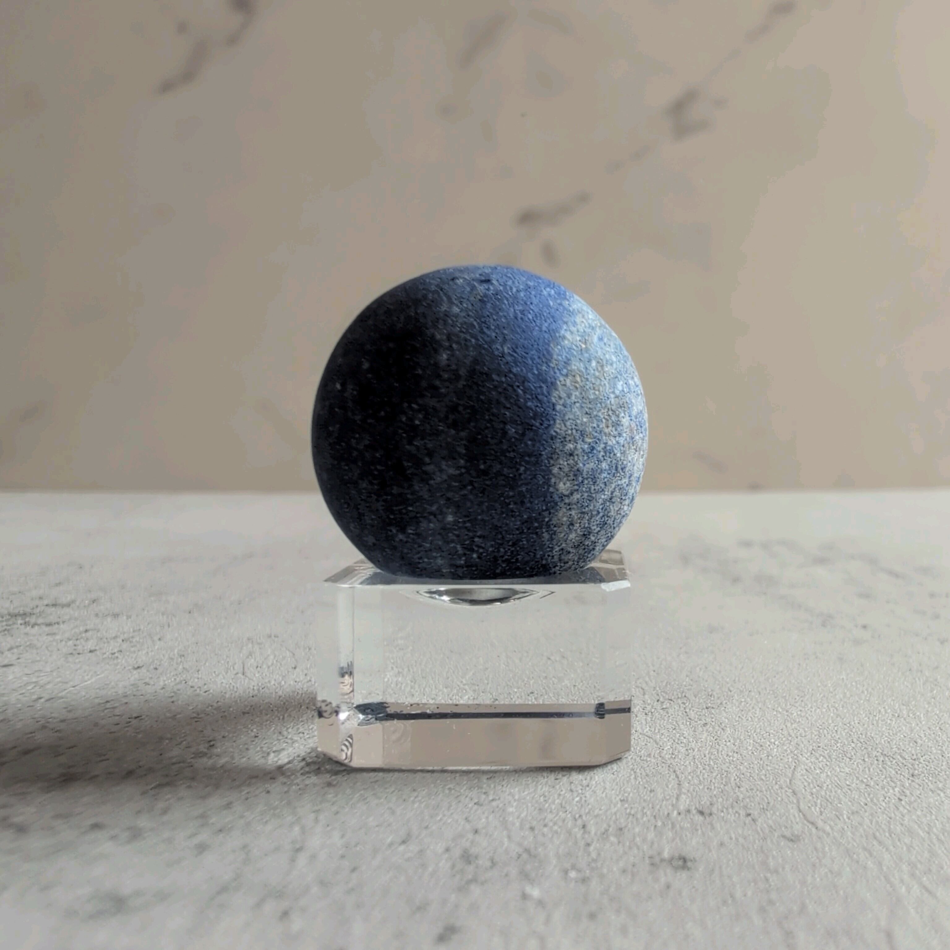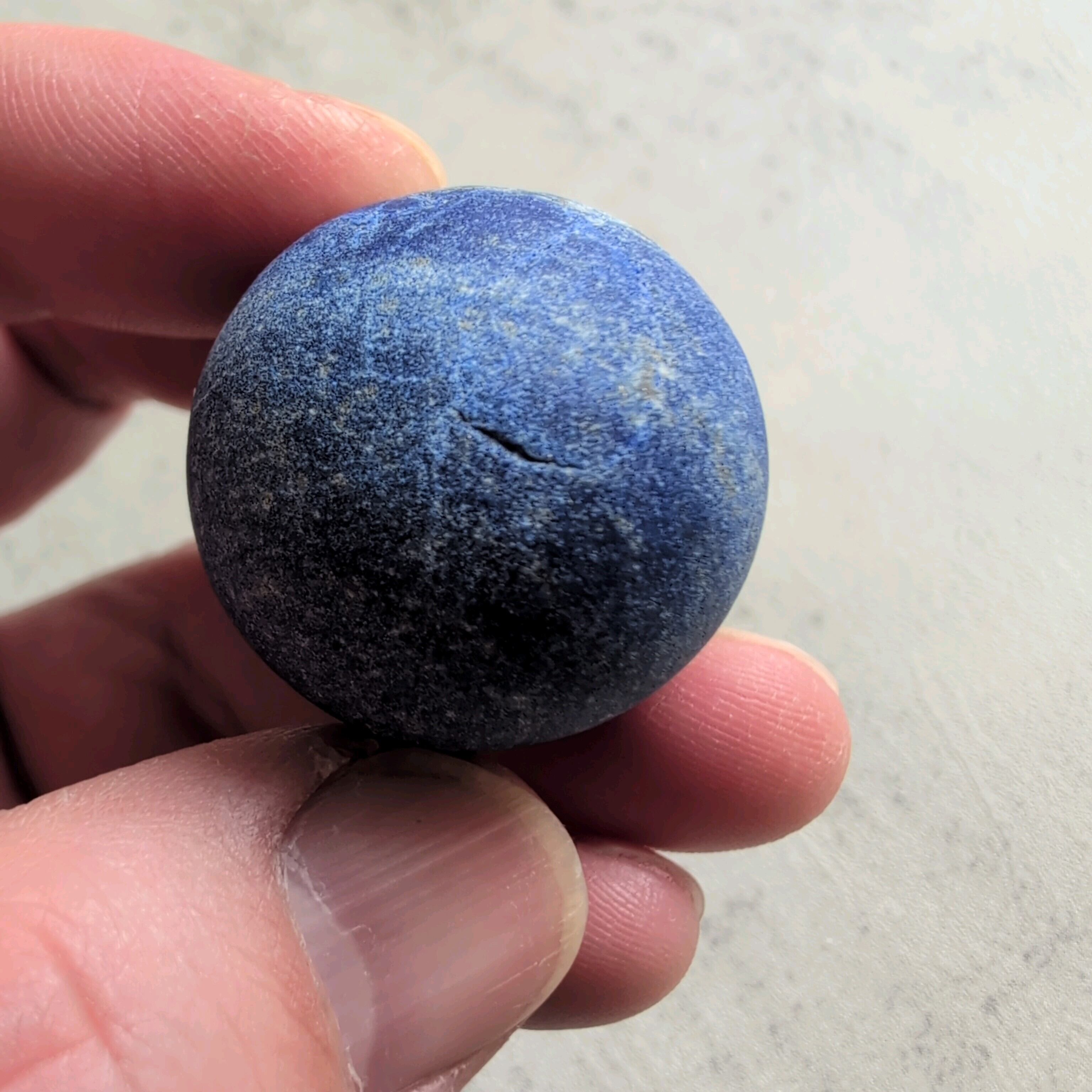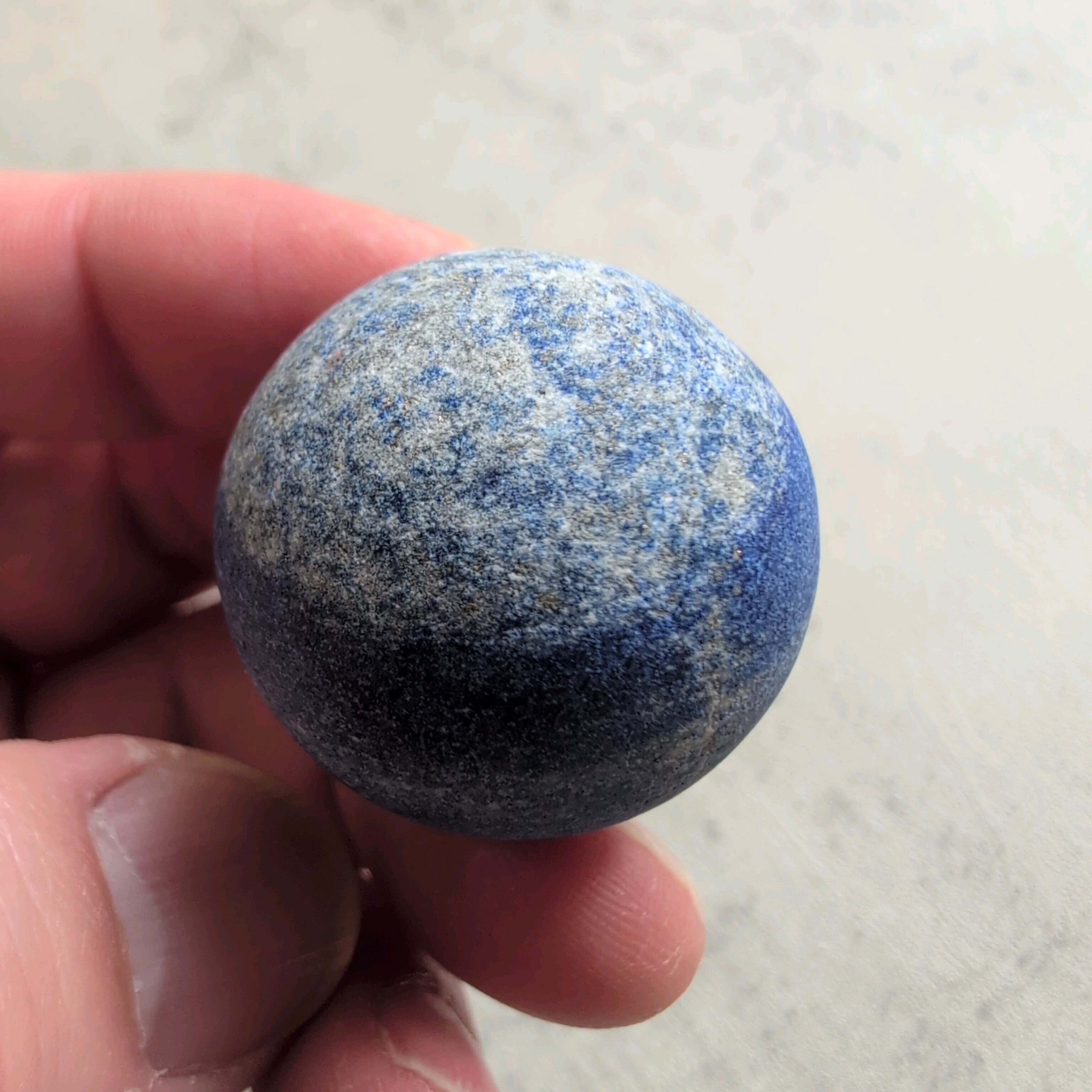 ラピスラズリは青(ラズライト)・白(カルサイト)・金(パイライト)という異なる鉱物が混ざった石ですが、高度差が大きいので原石のまま球体に仕上げるのが非常に難しい石です。