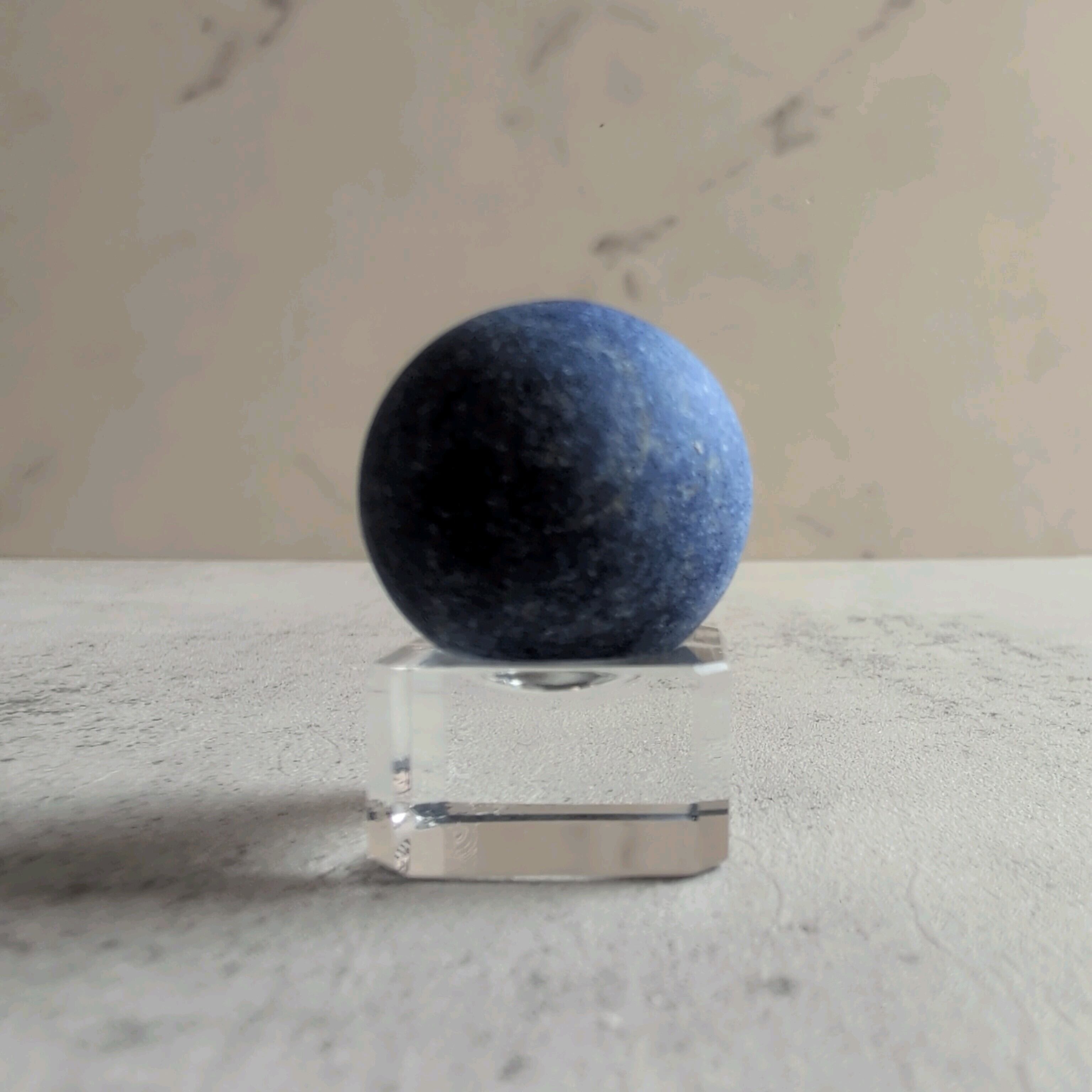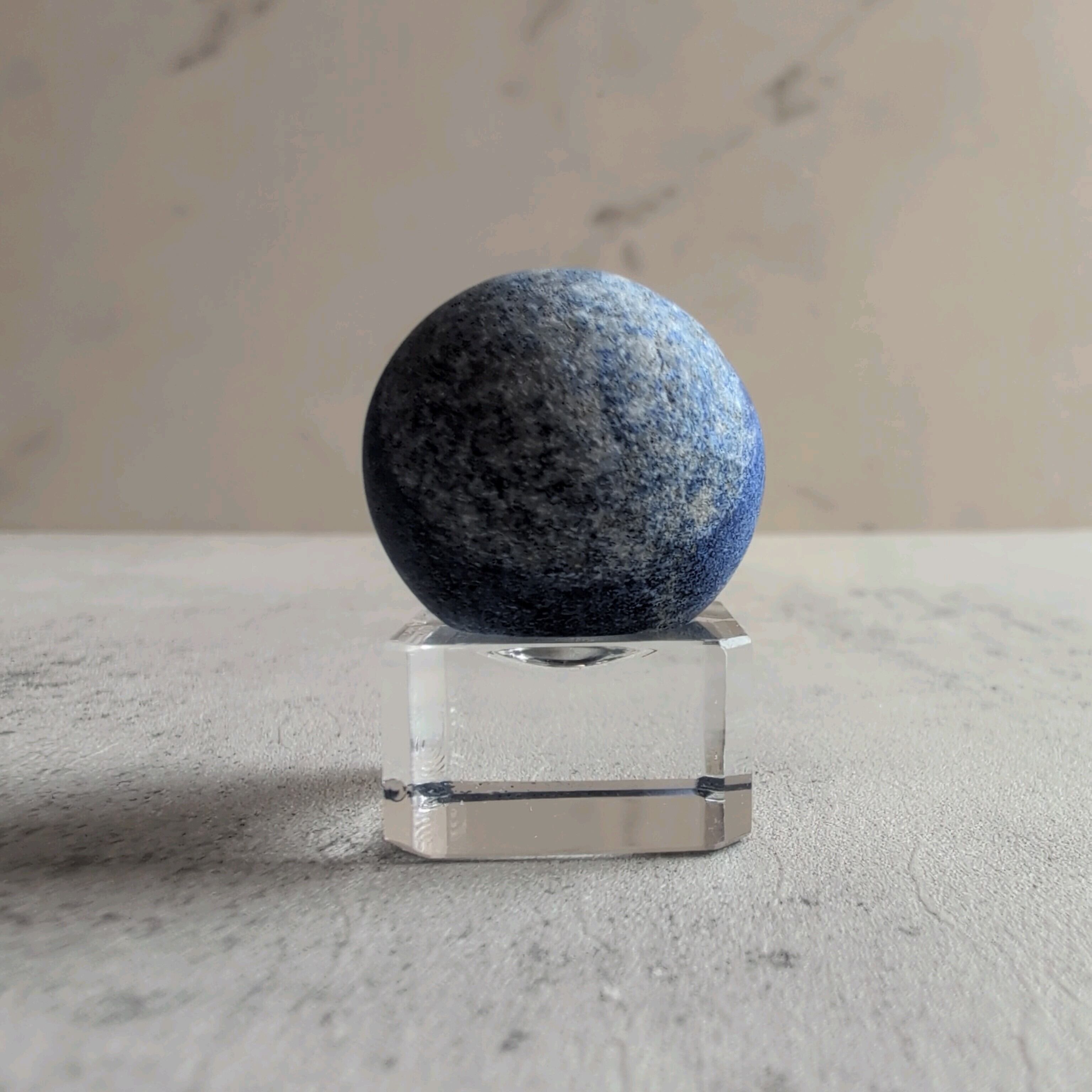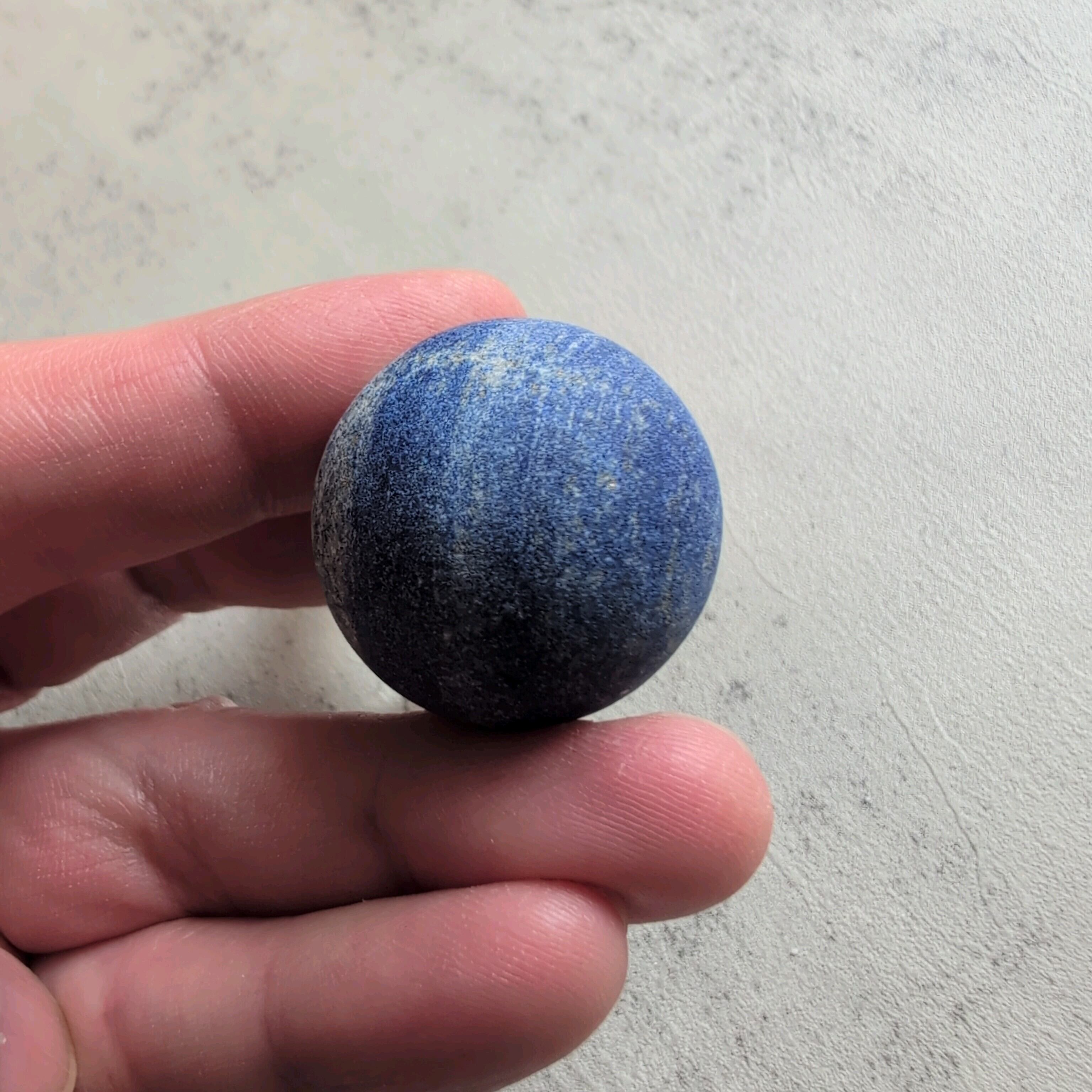 ラピスラズリは青(ラズライト)・白(カルサイト)・金(パイライト)という異なる鉱物が混ざった石ですが、高度差が大きいので原石のまま球体に仕上げるのが非常に難しい石です。